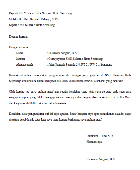 Melalui surat ini saya menyatakan maksud . Download contoh surat pengunduran diri dari jabatan kepala sekolah secara. 5 contoh surat pengunduran diri dari jabatan kepala sekolah terbaru ms word. Dari sekolah yayasan guru sd smp sma atau bahkan dari paud tk kita semua sudah . Ibu kepala sekolah tk al iqra di tempat bismillahirrahmaanirrahim.